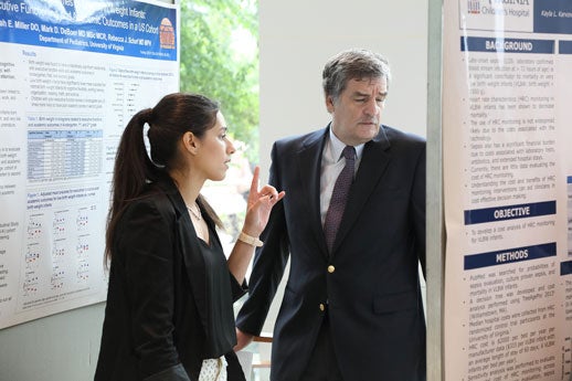Our 29th Annual Research Symposium took place on Thursday, May 27, 2017. The research day offers an excellent opportunity for faculty and staff of the CHRC to present the ground-breaking research that they undertake. Following the poster presentations, the trainee competition awards were given to Corrie Alonzo, Florencia Martinez and Sarah Miller for their outstanding work this past year, and Alice Hoyt received the Kendig Award for 2017. Dr. William G Teague was also awarded the Lifetime Achievement Award for Pediatric Science. The day concluded with a small-group discussion led by this year’s keynote speaker, Patricio E. Ray, MD, a professor of pediatrics at George Washington University School of Medicine and The Children’s National Health System. Dr. Ray is renowned for establishing one the first pediatric nephrology research programs in the country to study the pathogenesis of HIV-associated renal diseases, and, in particular, for his work on the elucidation of the mechanisms by which HIV-1 induces renal injury in children. His talk, entitled “The challenges of becoming a translational research scientist in the next decade” was extremely productive and we were honored to have him speak at one of our principal annual events. Congratulations to all of our faculty and staff for the prestigious work they have done, and continue to do, in clinical, translational, and basic science research throughout the medical community.